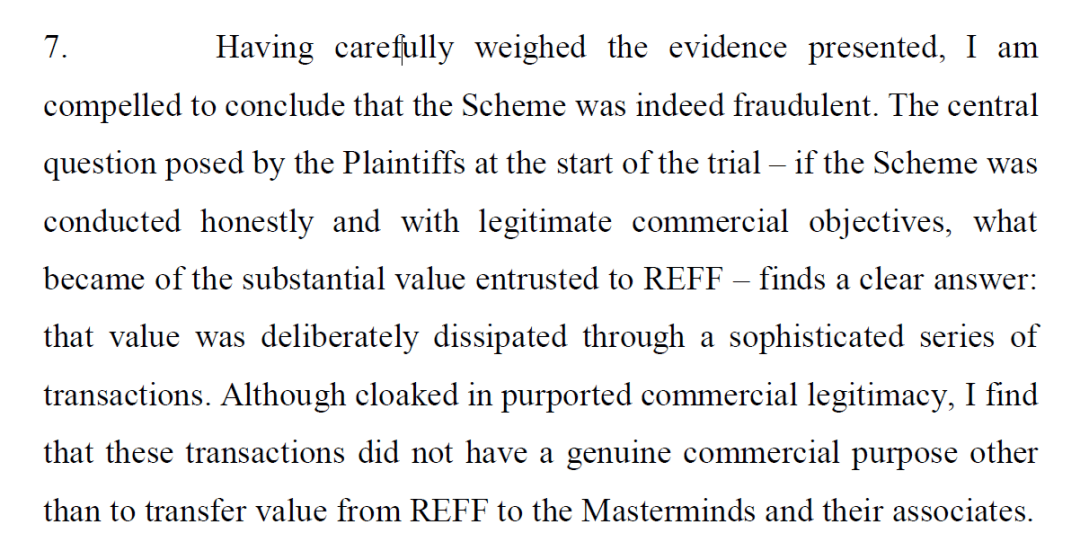 判决书指出,这些交易价格的不公、目的的不正当,完全是为了掏空基金的价值,使控制人能够通过其他渠道窃取资产实质。
