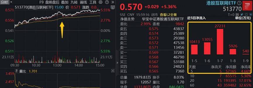 AI核心工具——港股互联网ETF(513770)场内价格大涨5.36%。