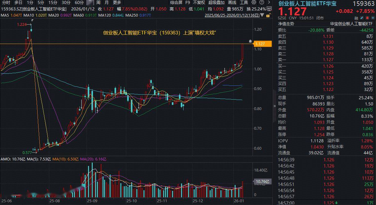 “填权预期”升温!创业板人工智能ETF(159363)爆量猛涨7.85%!AI应用火力全开,20CM涨停潮来袭