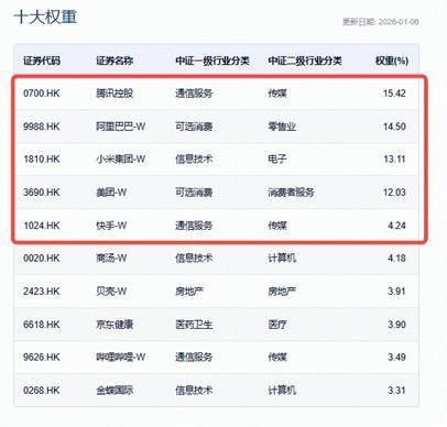 -W、腾讯控股、小米集团-W、快手-W、哔哩哔哩-W等港股AI巨头,前十大权重股占比超78%,龙头优势显著。