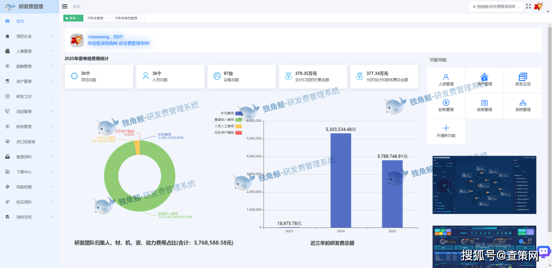 独角鲸·研发费管理系统作为查策网旗下的专业工具,致力于帮助企业构建精准核算+智能申报+数据协同的一体化研发管理能力,为企业在设备更新浪潮中把握政策机遇、释放创新潜能提供有力支撑。