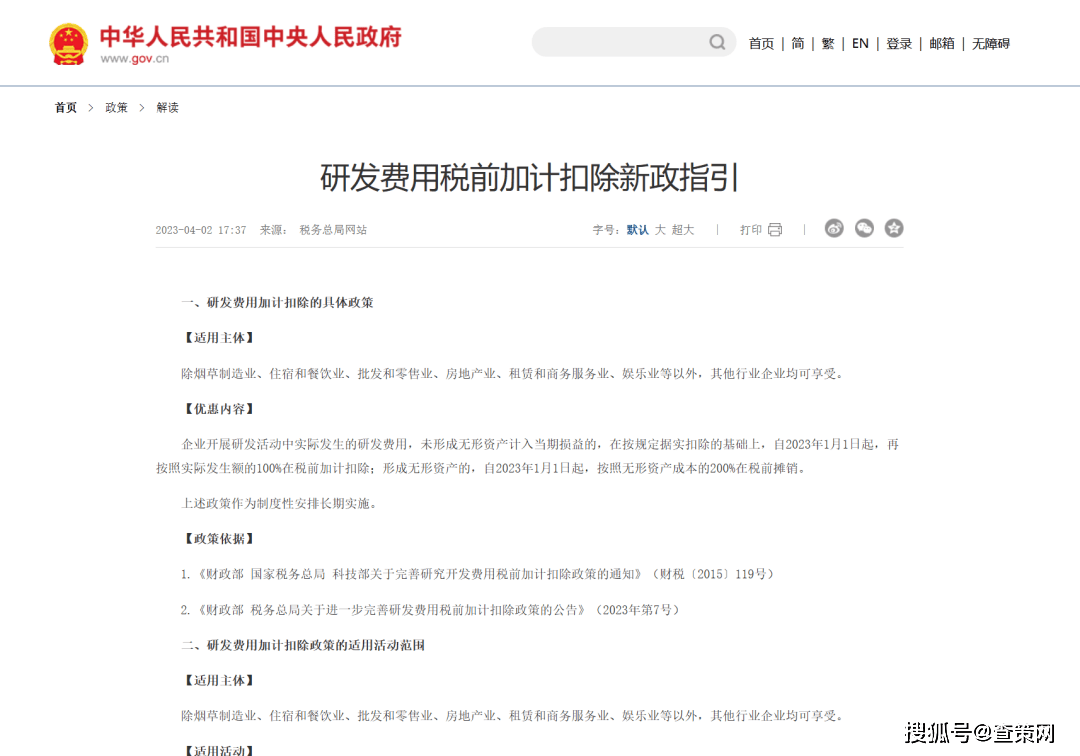 研发费用加计扣除政策持续优化。根据财政部、税务总局公告2023年第7号规定,自2023年1月1日起,企业开展研发活动中实际发生的研发费用,未形成无形资产计入当期损益的,在按规定据实扣除的基础上,再按照实际发生额的100%在税前加计扣除;形成无形资产的,按照无形资产成本的200%在税前摊销。集成电路企业和工业母机企业更可享受120%的加计扣除比例(财政部、税务总局、国家发展改革委、工业和信息化部公告2023年第44号)。