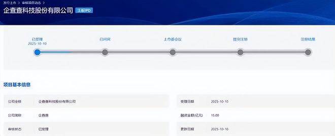 10月13日消息,据上交所官网,企查查科技股份有限公司已递交招股书,拟登陆上交所主板。
