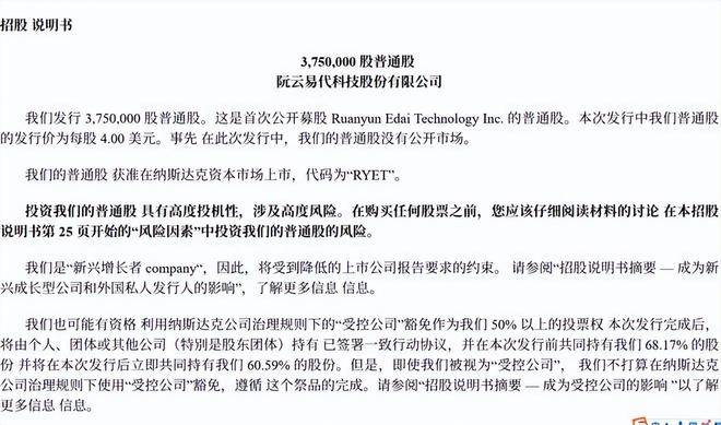 本次IPO发行价为每股4美元,共发行500万股美国存托股份(ADS),募资总额2000万美元。公司开盘价为4.5美元,收盘价为4.03美元,以收盘价计算,公司市值达约4.77亿美元。