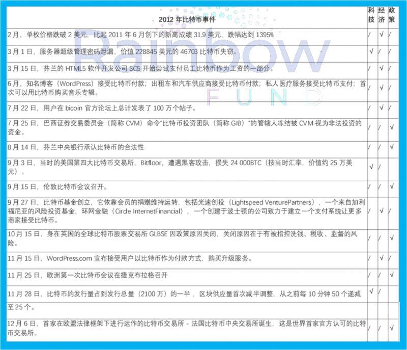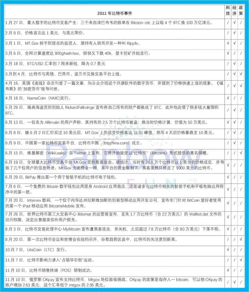 从7月开始,比特币的应用落地得到了进一步拓展,价格也随之逐步回升,至8月,第一次比特币会议和世博会在纽约召开,比特币价格为 11 美元。然而,11月时的比特币又暴跌至2美元。