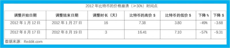 延续2011年的颓势,比特币价格在 2012 年2月跌破2美元,比起 2011年 6月创下的新高成绩31.9美元,跌幅达到 1395%。