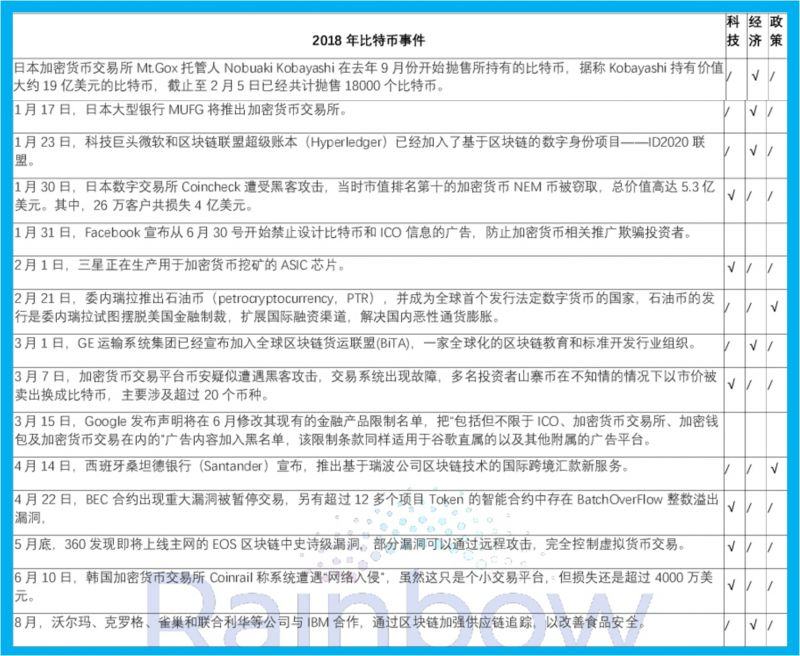 2018 年1月初比特币价格的开始,从以倒闭的日本加密货币交易所Mt.Gox抛售其持有的比特币的开始。此后市场陆续有负面的新闻传出,多家主流社交媒体机构都已禁止了相关宣传;多家交易所遭到黑客攻击;政府监管带来隐忧。