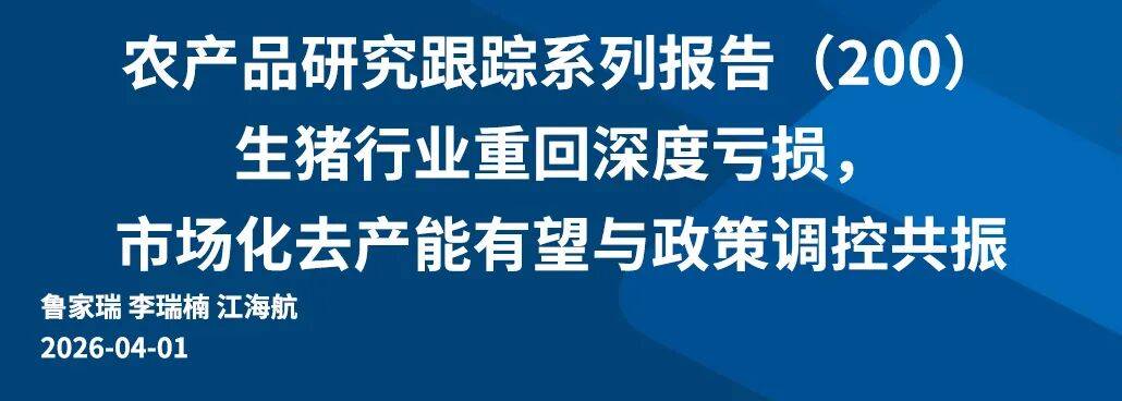 生猪:行业重回深度亏损,市场化去产能有望与政策调控共振。3月27日生猪价格9.38元/公斤,周环比-5%;7kg仔猪价格约239元/头,周环比-15%。