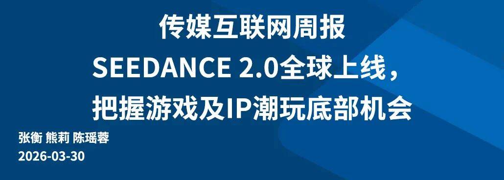 Seedance2.0在全球范围正式推出,OpenAI宣布终止Sora项目。1)字节跳动旗下前沿AI视频生成模型Seedance2.0已正式在全球范围内推出,在Artificial Analysis 独立盲测排行榜的文本到视频类别中排名首位;2)OpenAI 宣布终止 Sora 项目,这一决定不仅标志着一款明星产品的陨落,也预示着公司正在进行深度业务重组。Sora的终止与OpenAI资本市场动作密切相关,与微软的关系进一步紧张;3)OpenAI的ChatGPT 广告业务试点项目在上线短短六周内,年化收入突破1亿美元大关,展现了AI原生平台在流量变现上的潜力;4)3月网络游戏审批,130款游戏过审,其中值得关注的有腾讯北极光的《莉莉小人国》、恺英网络《传世群英传》、广东星辉天拓《庆余年:南庆大亨》、三七互娱《小头盔大冒险》等。