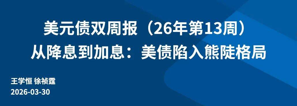 宏观博弈:地缘溢价与通胀回归重塑加息/降息博弈。近期美债市场陷入地缘风险溢价与数据依赖的激烈博弈。尽管美国经济数据(如就业)仍显韧性,但伊朗战争引发的能源价格飙升与供应链中断,导致市场对二次通胀的担忧急剧升温。市场定价逻辑发生根本性逆转:从降息预期收窄彻底转向加息恐慌。利率期货市场已完全剔除年内降息的可能,反而开始定价美联储在2026年内实施1次加息的概率。这种滞胀+紧缩的宏观叙事导致美债收益率曲线呈现熊陡式上行,市场波动率显著加剧。