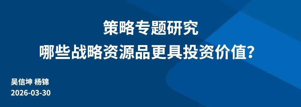 核心结论:①部分资源品已有战略属性,资源国寻求产业链定价权、资源民主主义倾向强化,消费国加强关键资源战略储备、强化供应链安全。②战略资源品储量具有稀缺性,生产与加工精炼环节高度集中,是产业安全和国防安全的基础,更是能源转型与科技发展的关键。③战略资源品行情不仅源自短期冲击催化,更在于供需变化支撑价格中枢抬升的长期逻辑支撑,中期行情有望继续向上。