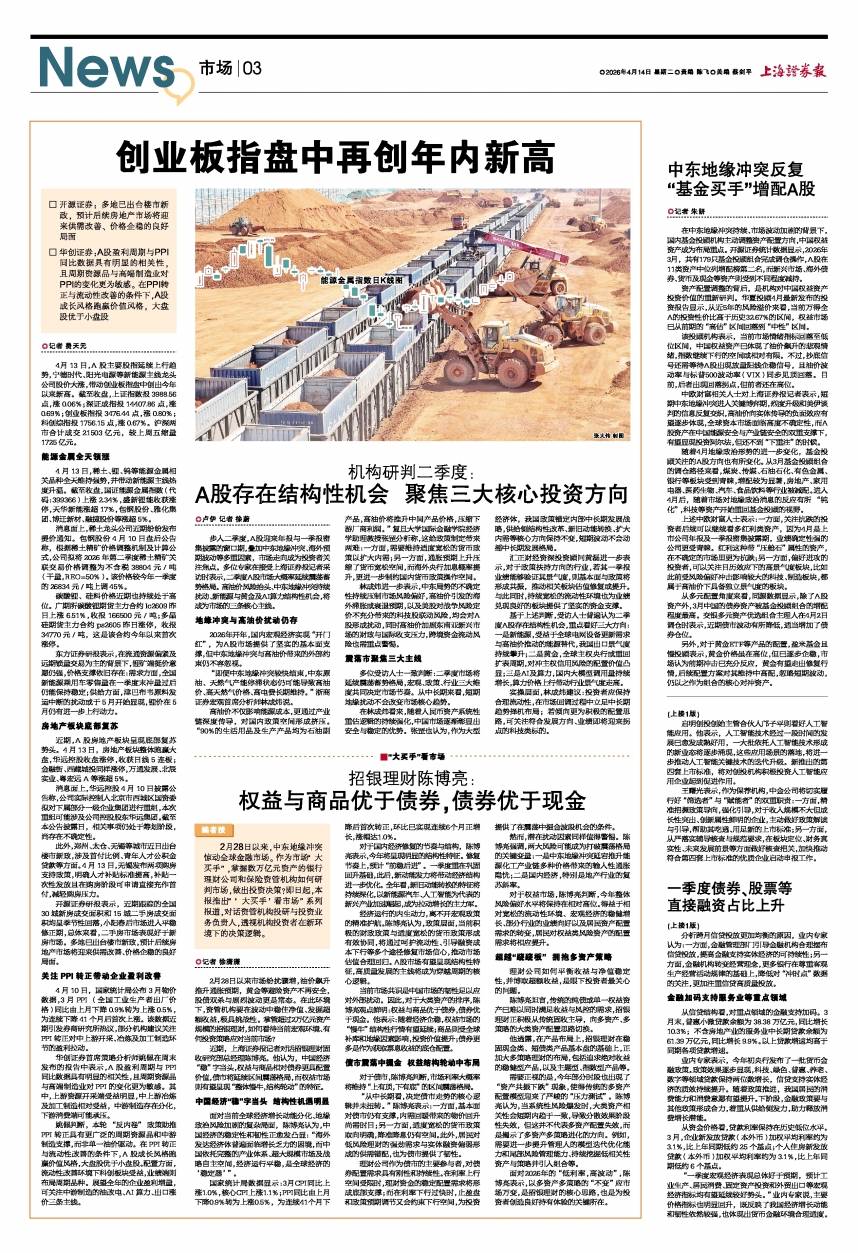 经济运行的内生动力,离不开宏观政策的精准护航。陈博亮认为,政策层面,当前积极的财政政策与适度宽松的货币政策形成有效协同,将通过呵护流动性、引导融资成本下行等多个途径修复市场信心,推动市场估值合理回归。A股市场有望呈现结构性特征,高质量发展的主线将成为穿越周期的核心逻辑。