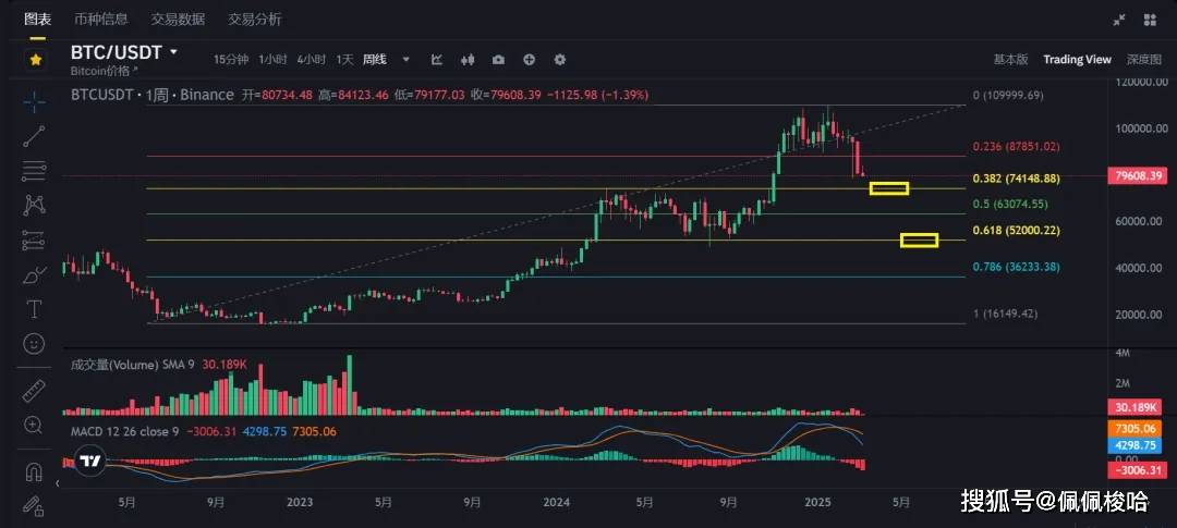 兄弟们耐心等待,耐心等待比特币跌到地动山摇,跌到哀鸿遍野,跌到大户被不断清算的时候,跌到这张图的目标价。若资金充足,可考虑在7.3万至7.8万美元区间出现多次支撑时逐步抄底。不建议抄底山寨币,因为山寨季一去不复返,山寨币会跌得更惨!