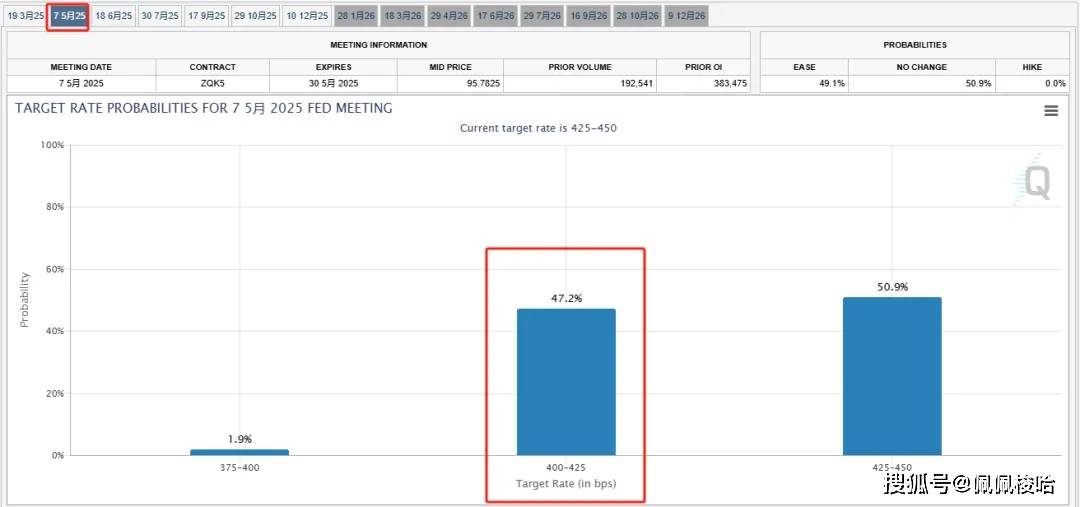美联储3月维持利率不变的概率为96%,降息25个基点的概率为4%。到5月,维持利率不变的概率为50.9%,累计降息25个基点的概率为47.2%,累计降息50个基点的概率为1.9%。